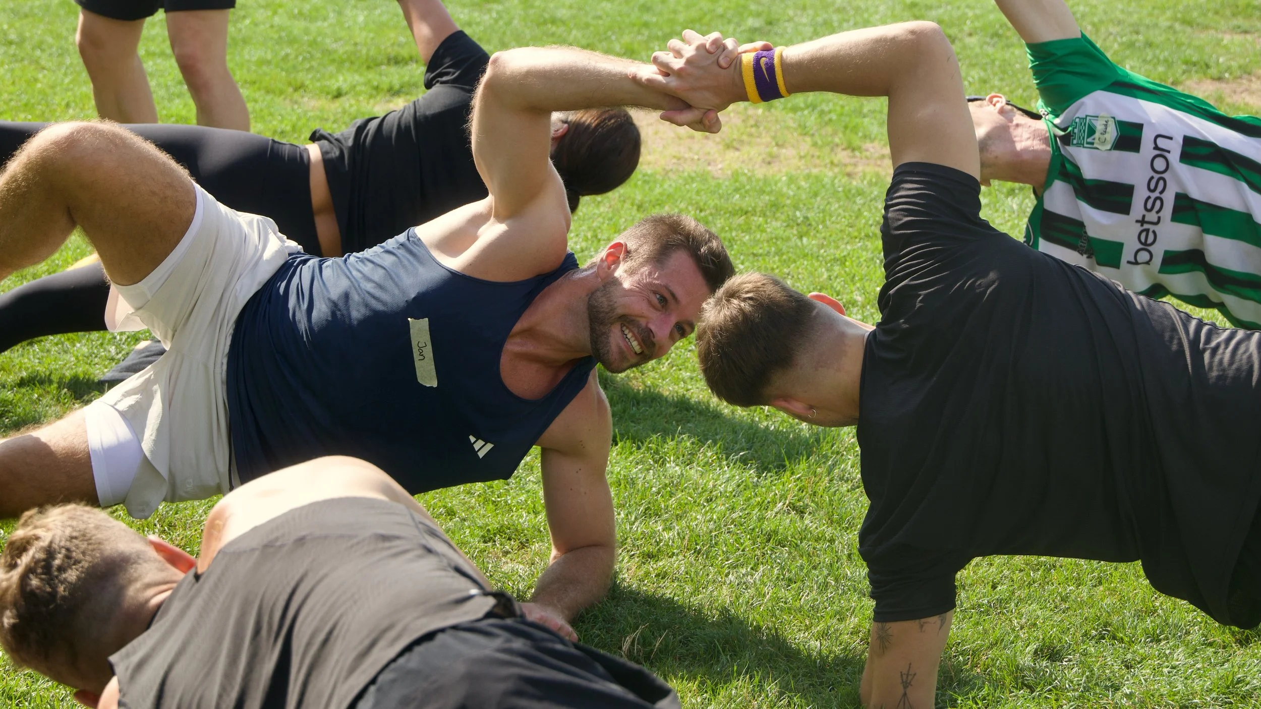 Our sessions combine functional partner workouts with a social moment afterwards – a stretch, a shake, a conversation or a coffee.
